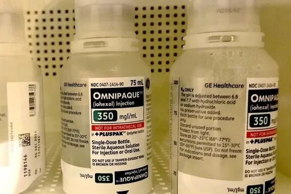 目前最为短缺的是碘海醇,这种化学药品被广泛用于癌症病人、心脏病人以及几乎所有需要X光和CT检查的病人。当医院要为患者做增强CT之前,往往要为患者静脉注射一定剂量的造影剂,以达到病灶显影的效果。