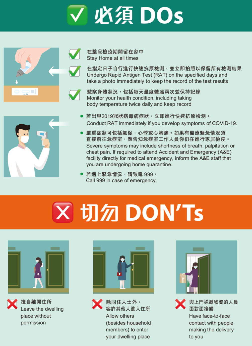 包括你和同住人,在居家隔离期间不得离开家,避免与上门防疫人员和医护人员以外的其他人接触。