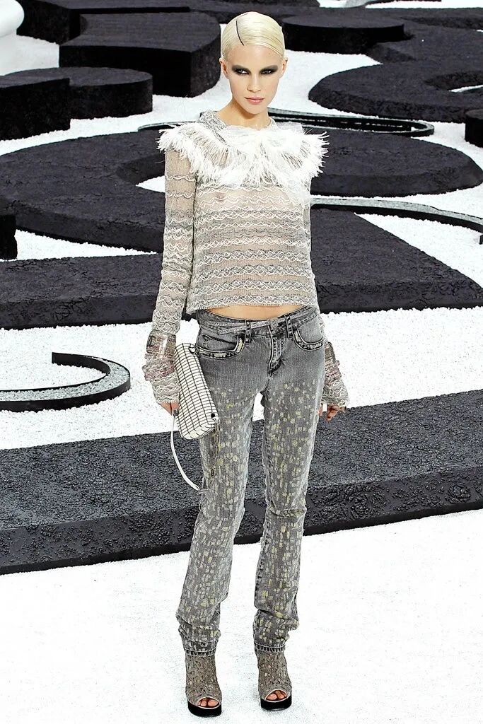 Alexander McQueen, SS 1999 甚至一度连老佛爷都没能逃过朋克的洗脑,Chanel在2011年也出过一次带着“撕裂与伤口”的设计,Lagerfeld借用朋克这种粗糙的质感为其成品增加装饰。记者Tim Blanks对此系列发表评论,“Lagerfeld终于对Chanel动剪刀了,或者他是直接放了一屋子的蛾子出来”。 左右滑动查看更多 Chanel by Karl Lagerfeld, SS 2011 电影《库伊拉》的编剧或许也读到过这条评论,影片中除了有类似Westwood风格的朋克造型,在致敬麦昆2010春夏款的同时也用飞蛾为其做了“装饰”。