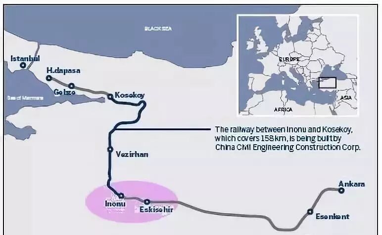 安伊高铁一二期线路图,圈中是伊诺努和埃斯基谢希尔。