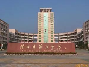 湛江市第二中学位于湛江市霞山区。学校源自约1905年法国人创办的安碧沙罗学校,1950年湛江解放后由数校合并创办湛江市第二中学(财政核拨事业单位)。现为国家级示范性高中、全国教育系统先进集体、全国教育信息化示范单位、全国读书育人特色学校、全国消防安全教育示范校、国家级田径传统项目学校、全国特色学校、中国西部教育顾问单位、聘请外国专家资格单位、广东省一级学校,广东省普通高中教学水平优秀等级学校、广东省文明单位、广东省安全文明校园、广东省心理教育示范单位、广东省依法治校示范校。