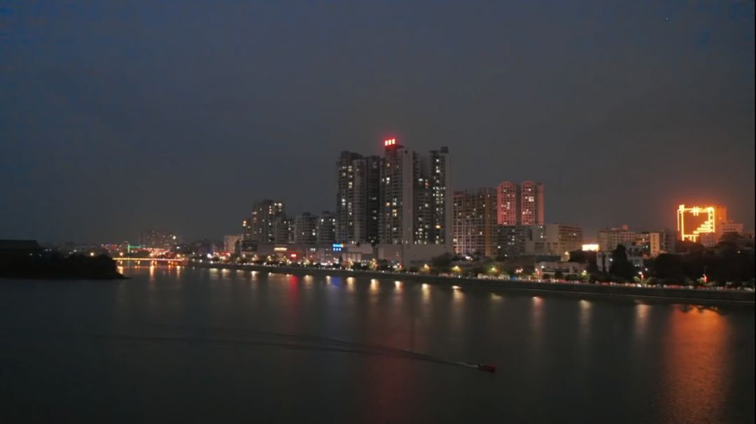 午夜,整个吴川璀璨耀目的七彩霓虹灯开始亮起,川流不息的滚滚车行线珠串流动。江上游船犁开平静的水面,起伏着波纹皱褶,如美人玉手轻柔地掀开了绸缎帘子。潘广源也在此时展开他紧张的航拍任务,一幅幅难以想象的美景,被航空摄像仪贪婪地记录着——