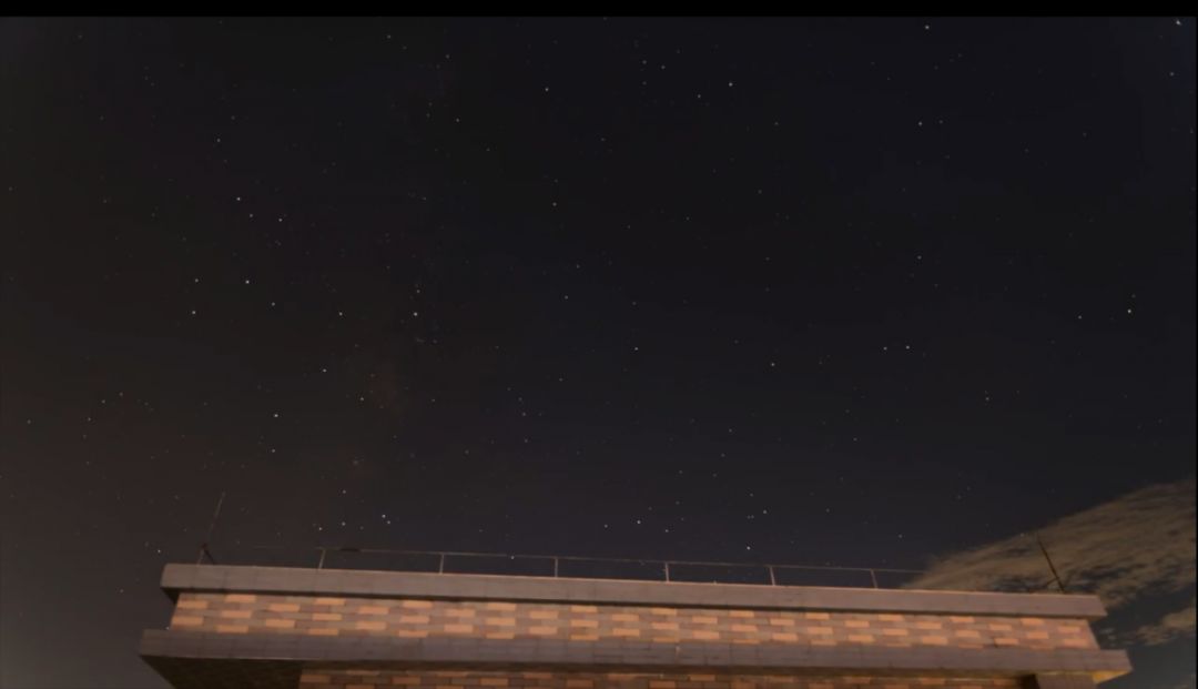 漆黑的天幕,流动的星轨画出清浅的流线,点点闪烁于茫茫宇宙。天上流动着透明的云体,也被七彩的地面映照得姹紫嫣红。