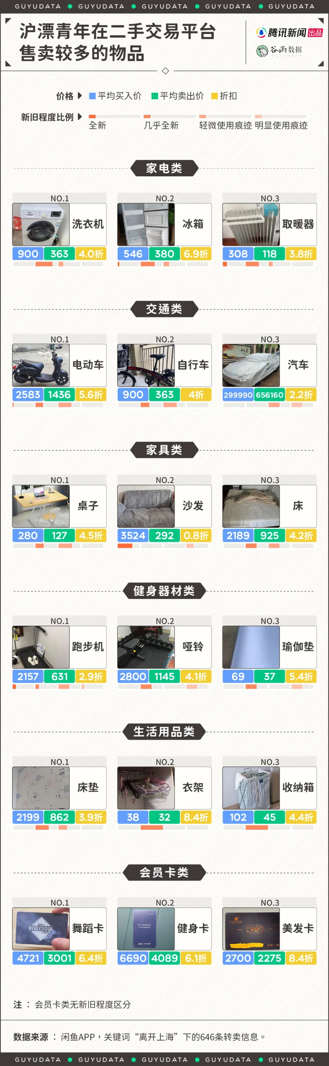 被卖得最多的,是带不走的家电、电动车和健身器材。
