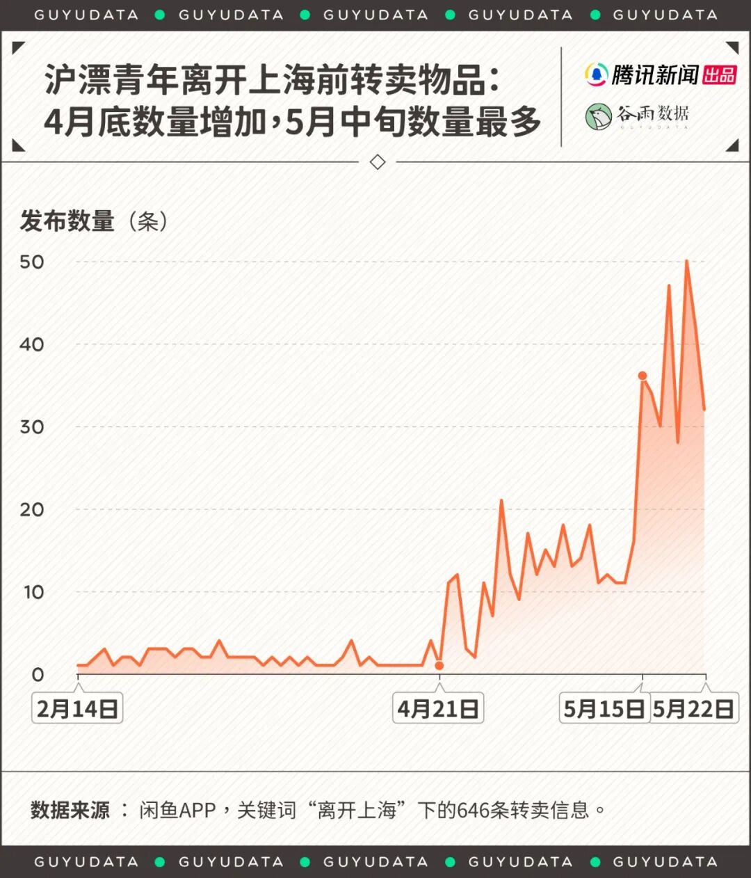 4月底开始,二手物品数量出现明显增长,5月中旬达到峰值。