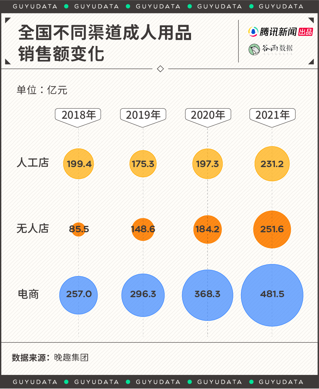 这种“逆势增长”来自“单独性活动”的增多,或许也来自疫情对业态的重塑——我们更多地网购,街上的无人店也在以肉眼可见的速度增加——这种变化正好满足情趣用品消费者对私密性的刚需。根据情趣用品集团晚趣的数据,2018-2021年,成人用品总销售额逐年上升,主要得益于无人店和电商渠道的持续增长。