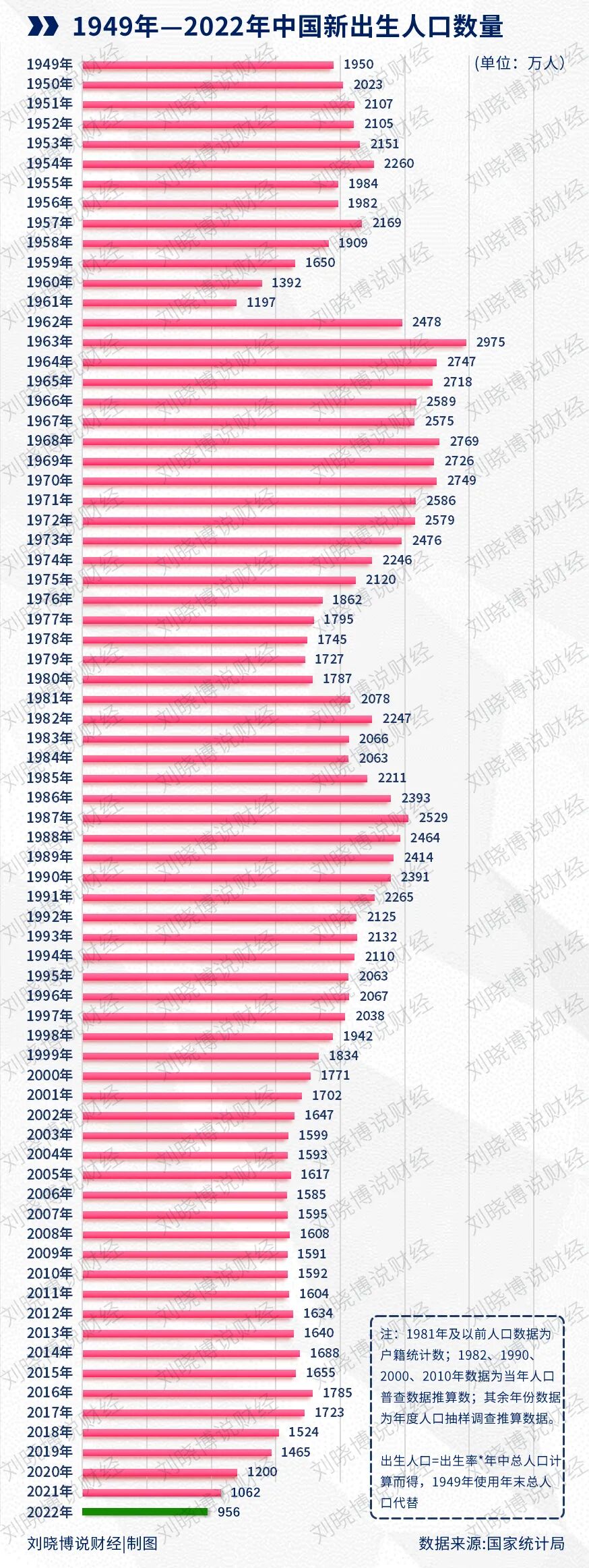 1949年以来,中国先后出现了四轮出生率低潮,分别是1961年前后、1979年前后、2003年前后和2022年前后。