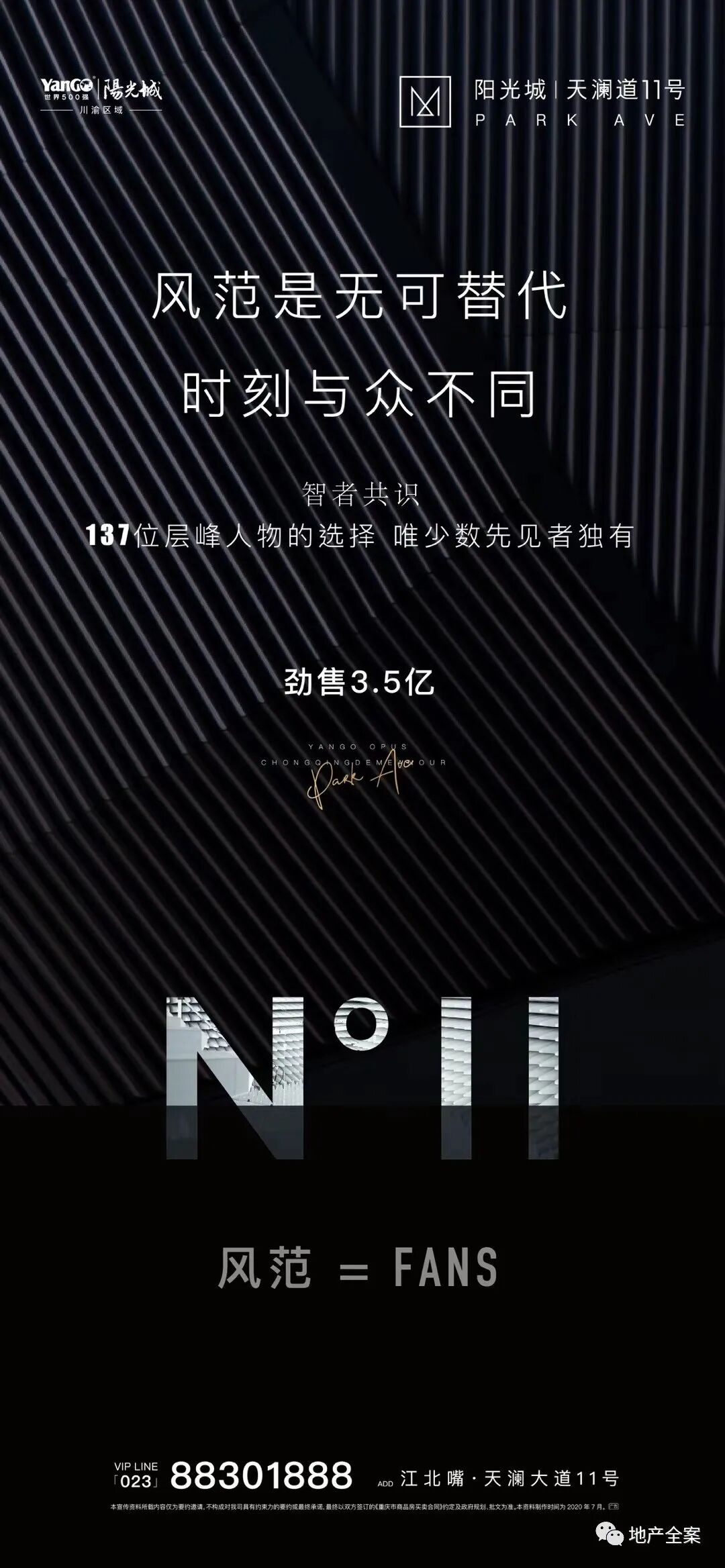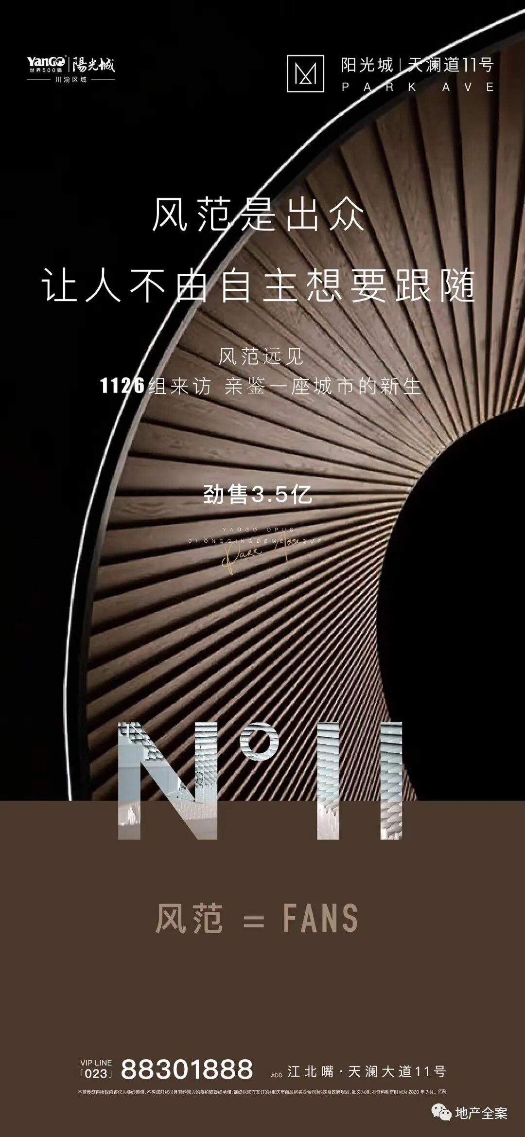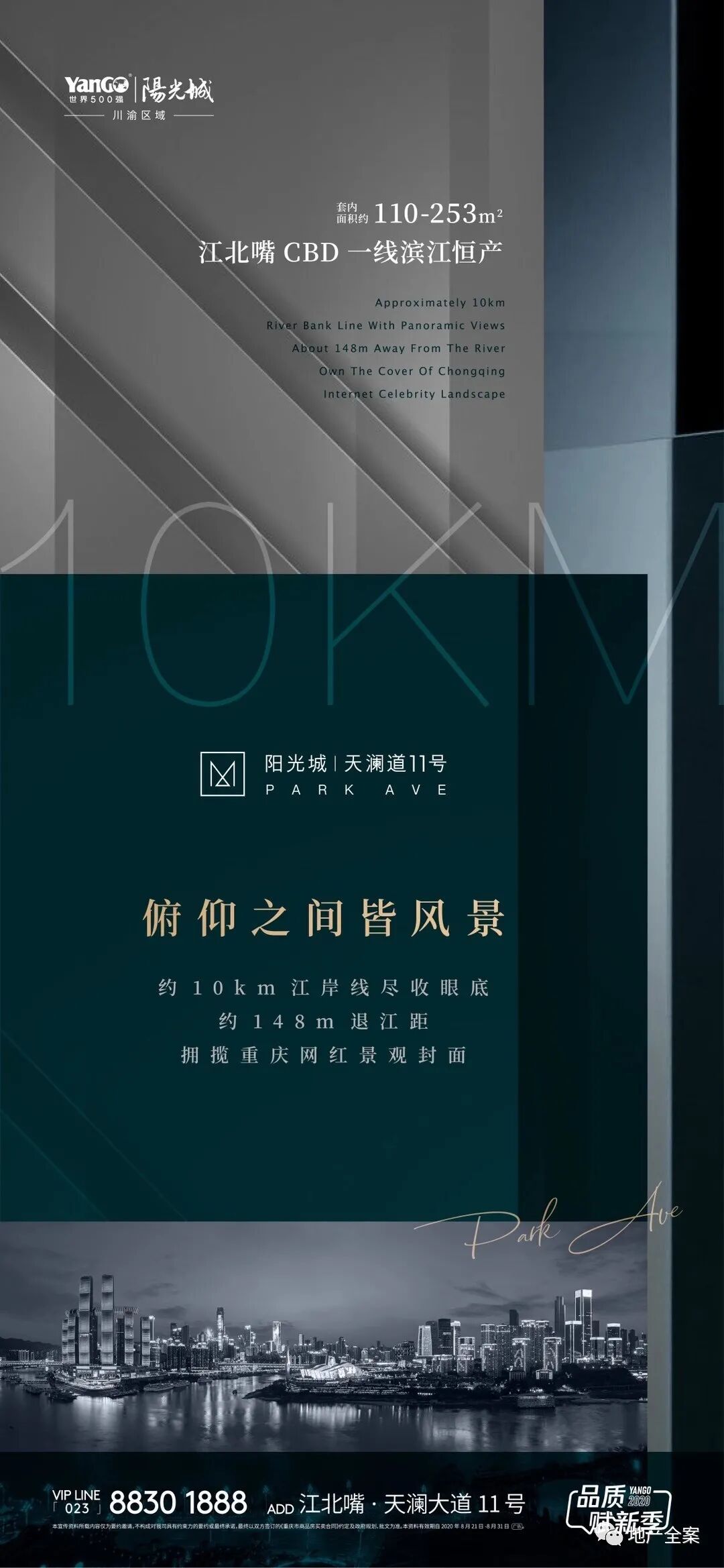这个项目一亮相就开始关注,画面表现力极强,实景的运用,版式的变化,非常高端大气,一眼就区隔其它项目。这期作品分享,要特别感谢重庆阳光城·天澜道11号项目的大力支持。