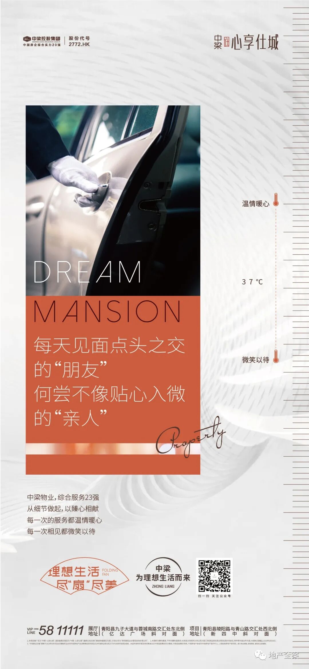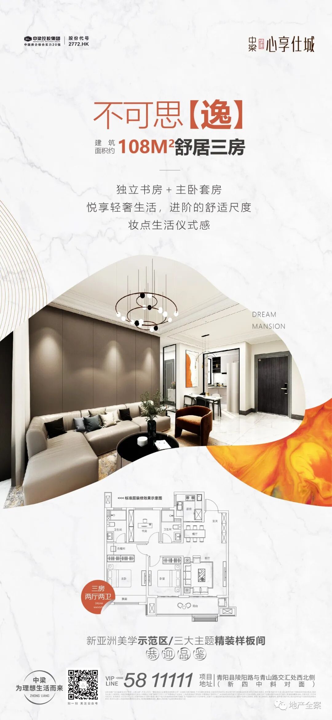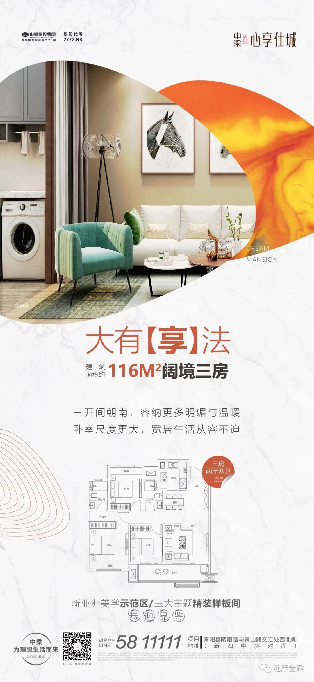 作为千亿中梁首入青阳的力作,区别于当地千篇一律的徽式建筑,心享仕城采用的是新亚洲风格建筑,因此画面方向统一采用偏现代、简约的画面,以项目专属VI橙色配合白色,色调和谐且显得画面整洁净透。初期品牌期主要通过球体及锦鲤形象,拔高调性和受众预期,随着项目节奏行进,画面价值稿配合文字与场景需求,辅以实景/效果图或者其他风格下的元素,在橙色主色调下进行千万种演绎。日积月累到达绑定VI色的效果,让受众将橙色与项目进行记忆连结。