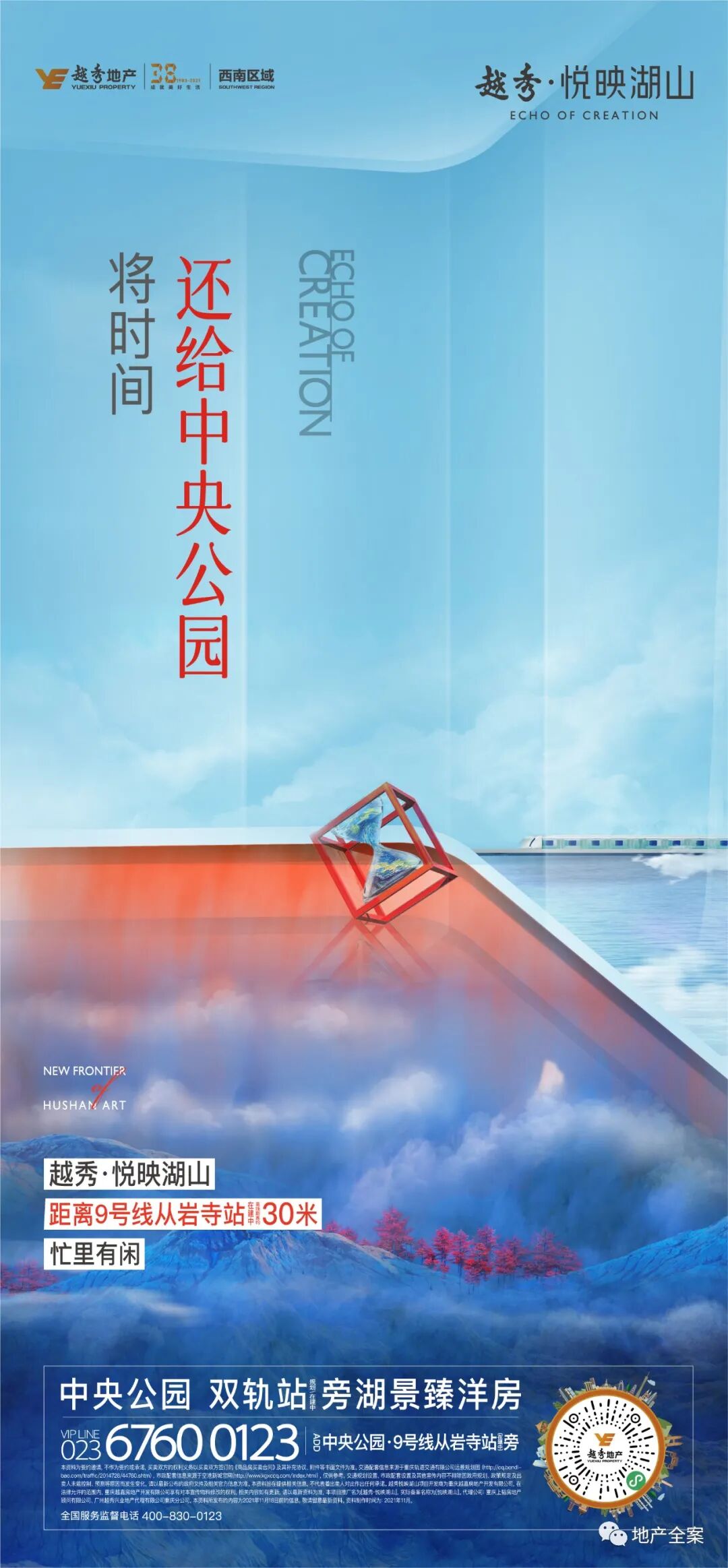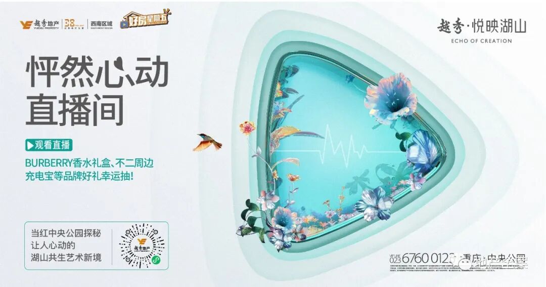 越秀·悦映湖山位于重庆中央公园热土,双轨站旁的湖景洋房,无界花石湖景公园。项目以【共生】理念切入,予时代以万物回响。后期因市场变化和营销任务,迅速进入价值强销期。