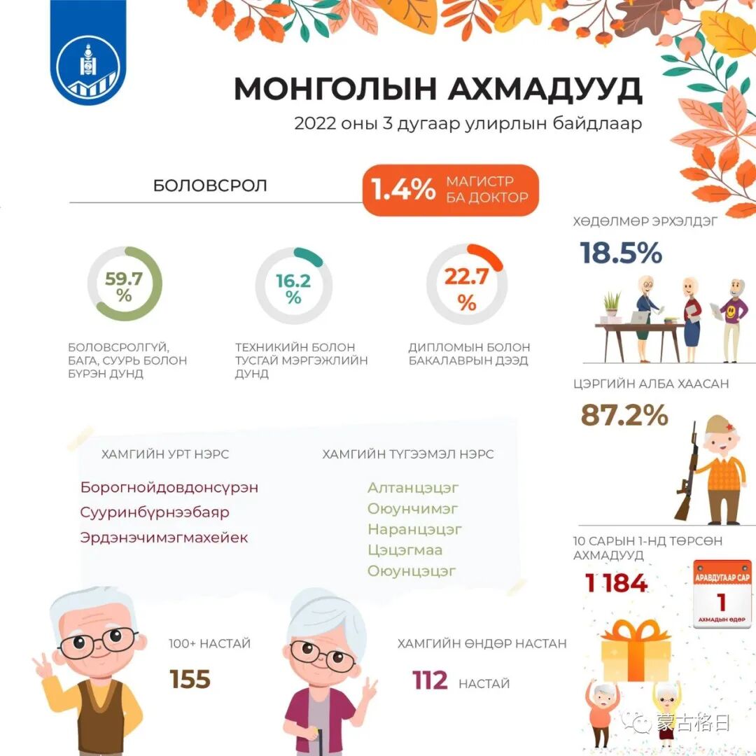 蒙古国统计局公布了与老年人有关的数据。