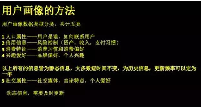 用户画像的纬度信息不是越多越好,只需要找到这五大类画像信息强相关信息,同业务场景强相关信息,同产品和目标客户强相关信息即可。根本不存在360度的用户画像信息,也不存在丰富的信息可以完全了解客户,另外数据的实效性也要重点考虑。