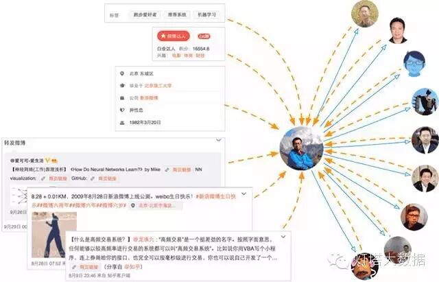 用户属性指相对静态和稳定的人口属性,例如:性别、年龄区间、地域、受教育程度、学校、公司……这些信息的收集和建立主要依靠产品本身的引导、调查、第三方提供等。微博本身就有比较完整的用户注册引导、用户信息完善任务、认证用户审核、以及大量的合作对象等,在收集和清洗用户属性的过程中,需要注意的主要是标签的规范化以及不同来源信息的交叉验证。