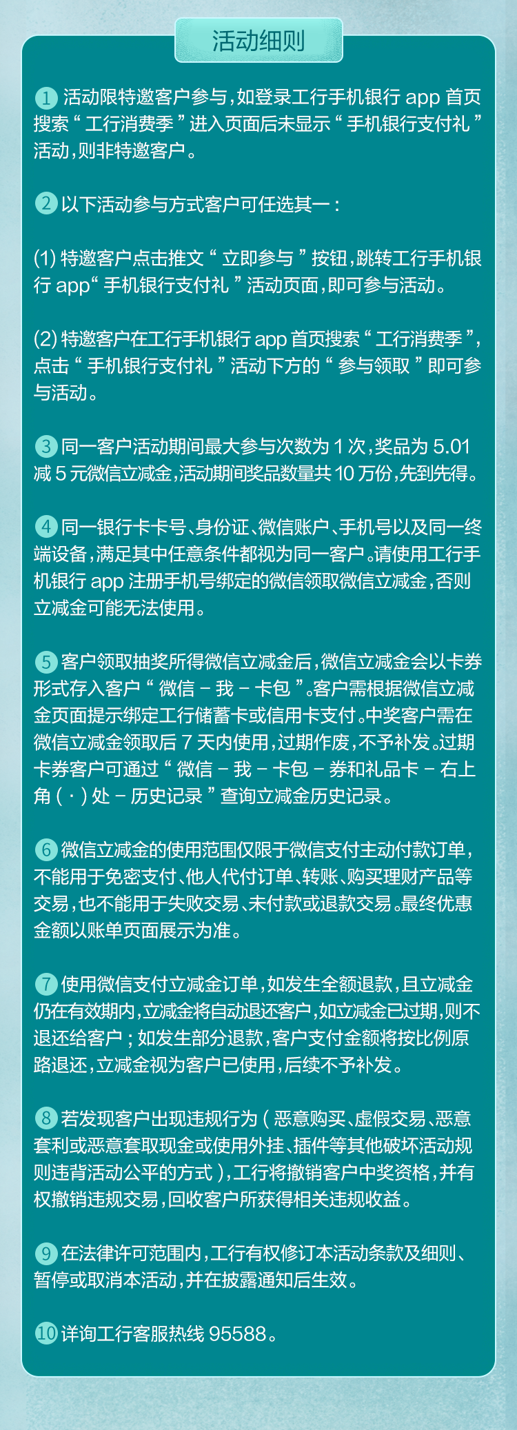About Feature 关注工行官方公众号,咨询客服、查账、查网点、办业务更便捷,享受有温度、有价值、有趣味的一站式贴心服务!