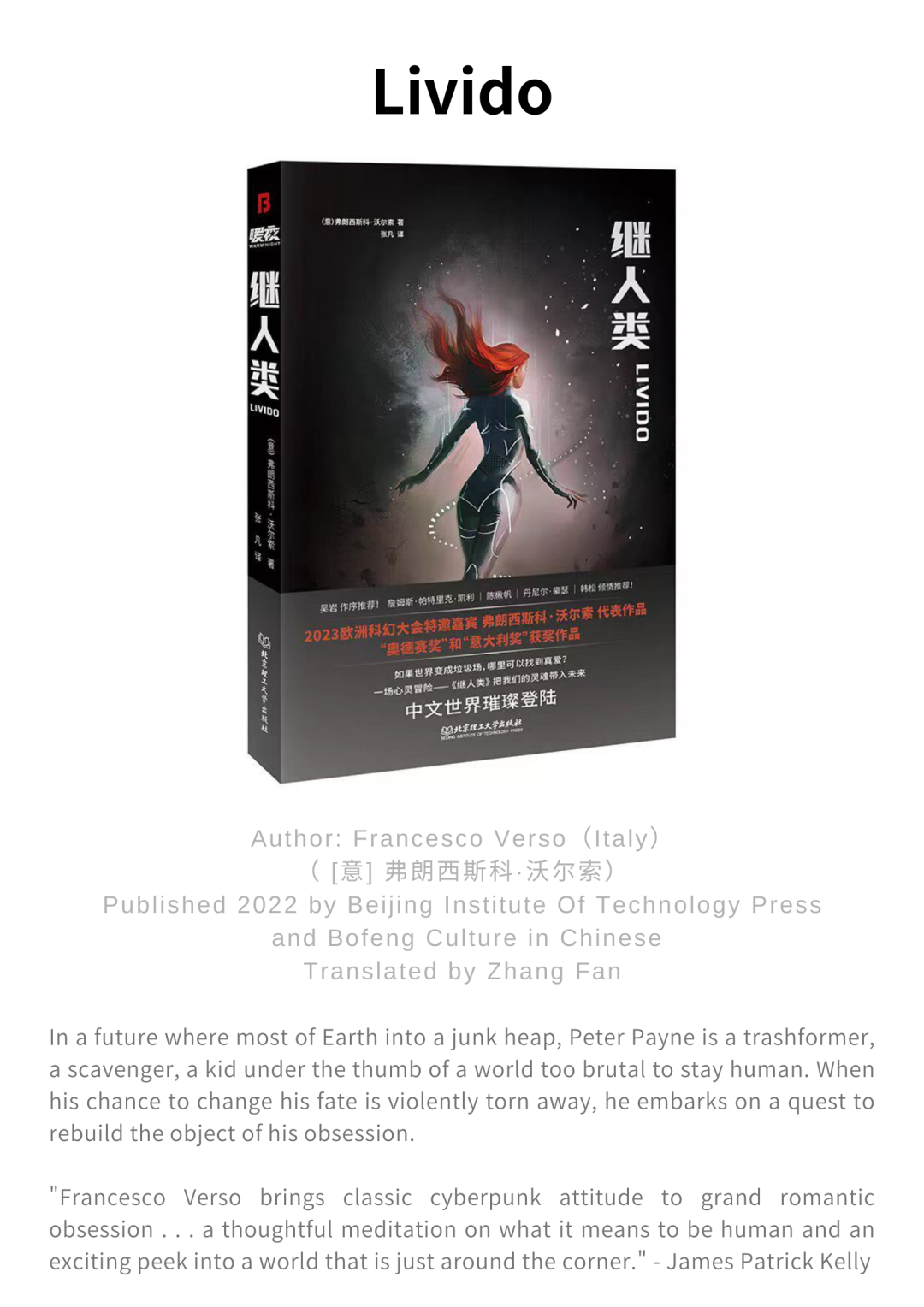 Another book of Verso's that has been published in China by the Beijing Institute of Technology Press is the critically acclaimed Bloodbusters, where he conjures up a world in which Roman citizens pay their taxes in blood, blending dystopian concepts, dark humor and raw human emotions to powerful effect. The award-winning book was born from a funny chat with friends about the never-ending problem of taxation, he said.