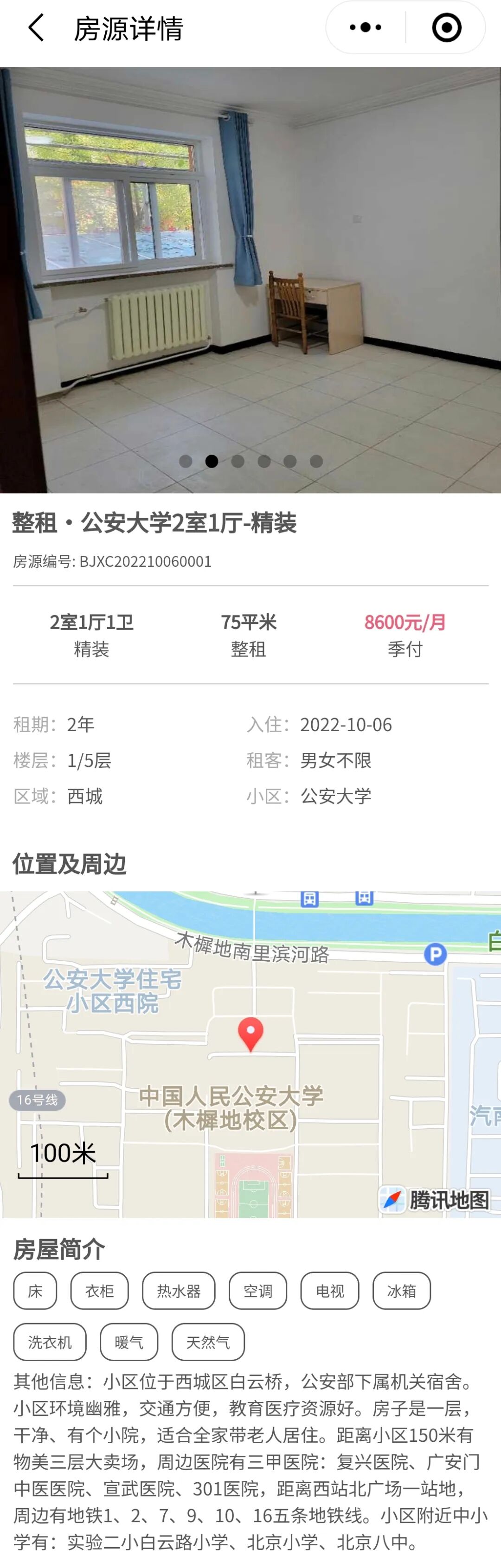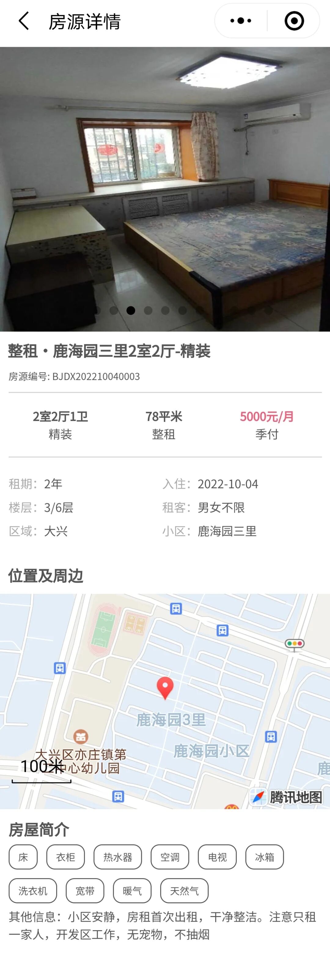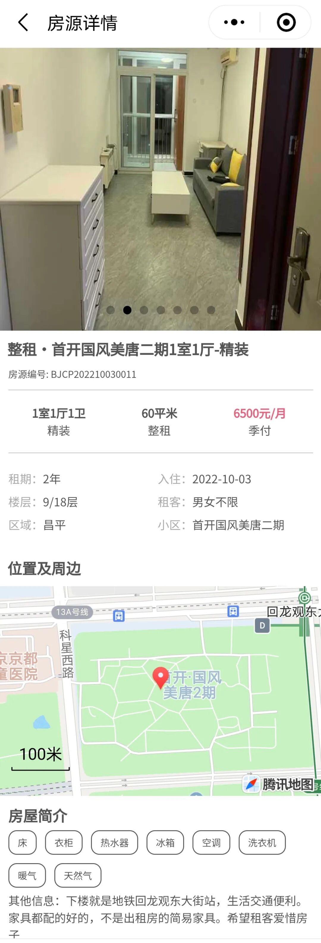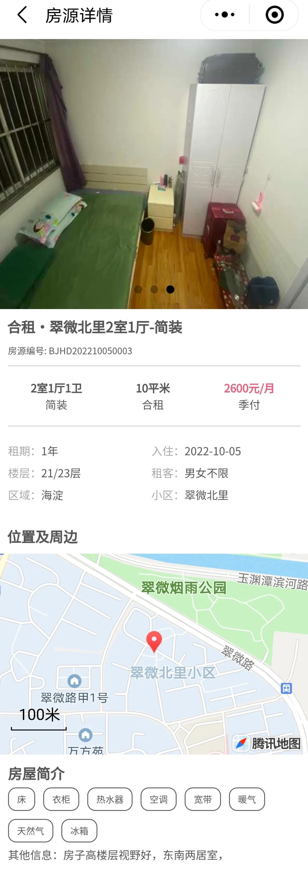 大家点击图片,就可以链接进入小程序的页面,找到该房源,并与房主联系看房、租房。