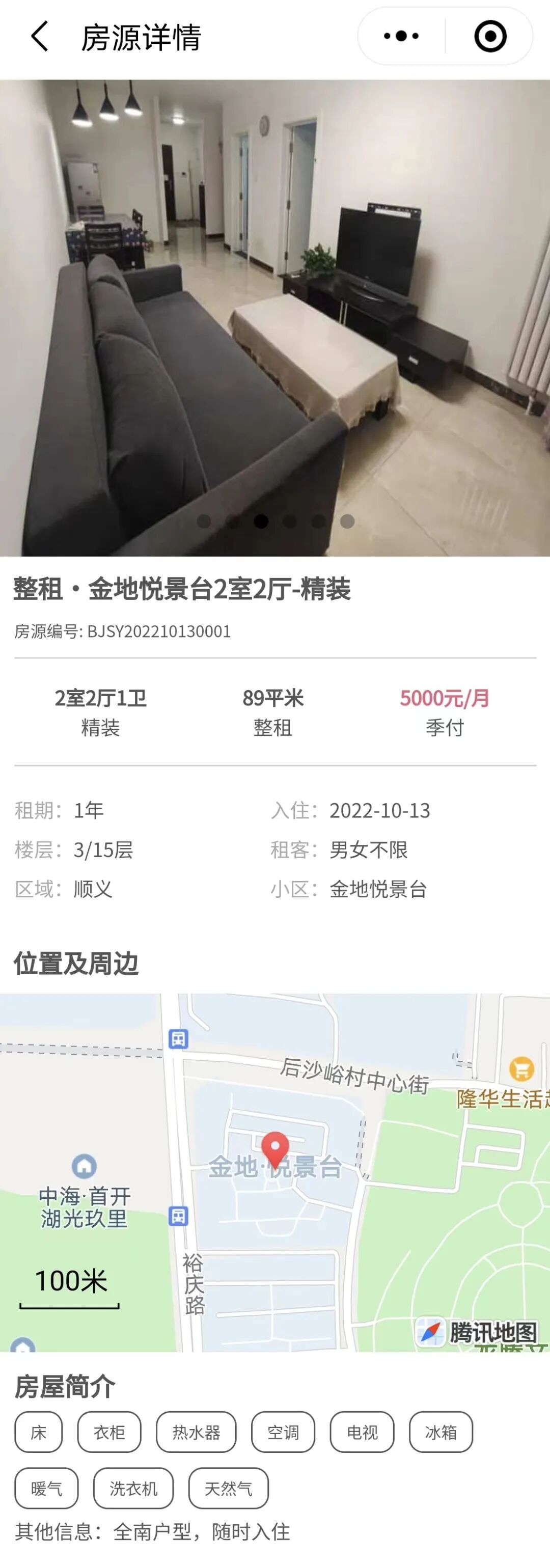 大家点击图片,就可以链接进入小程序的页面,找到该房源,并与房主联系看房、租房。