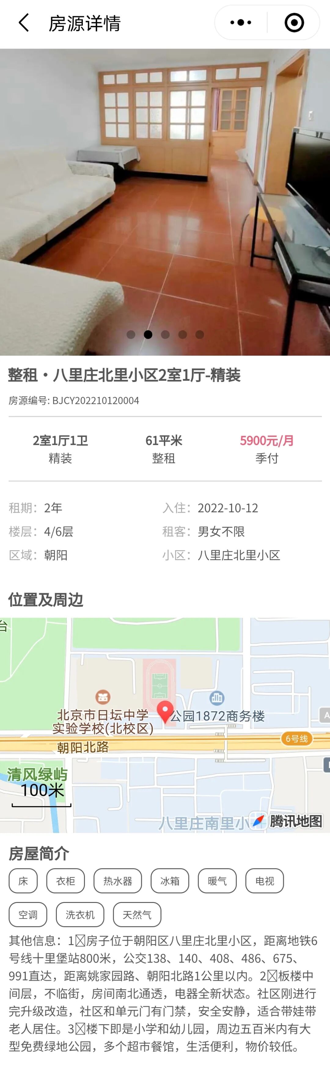 5、朝阳八里庄两居室月租5900元