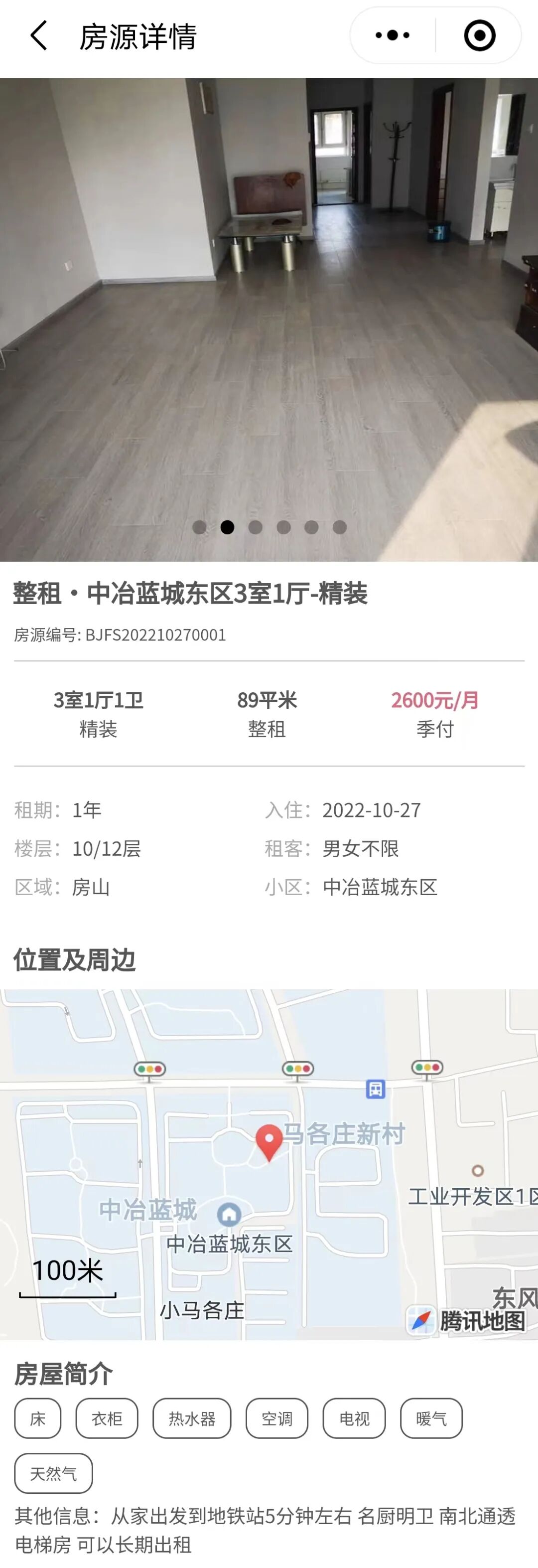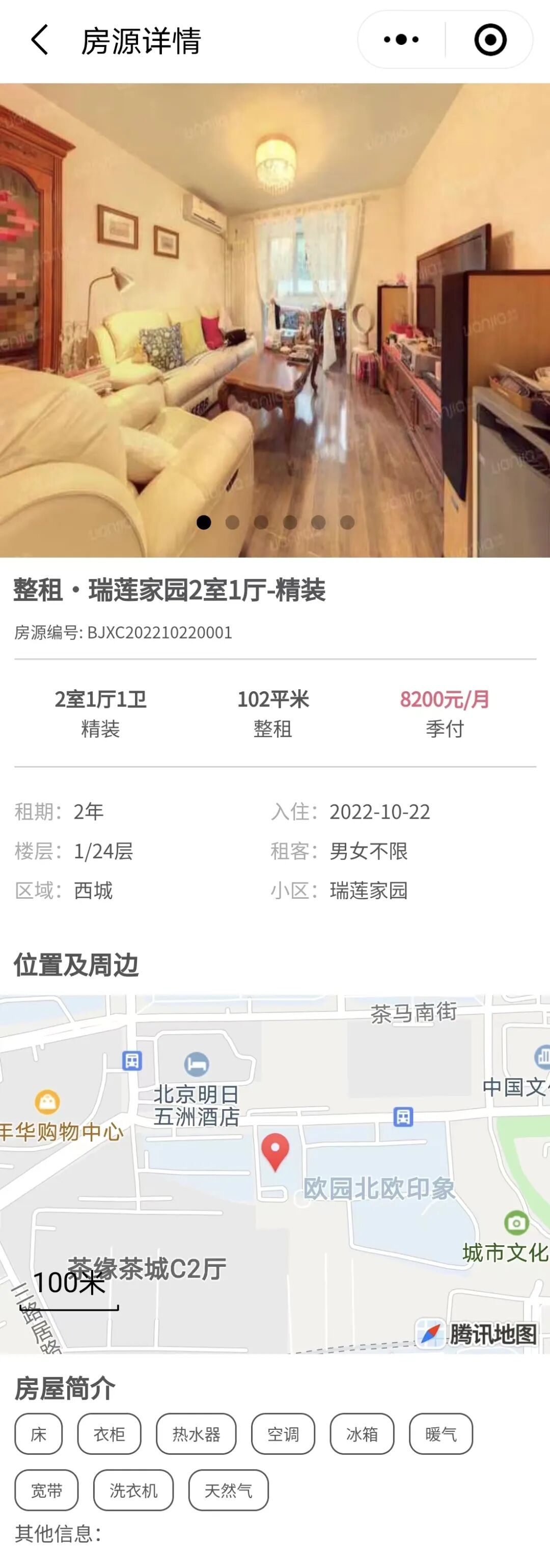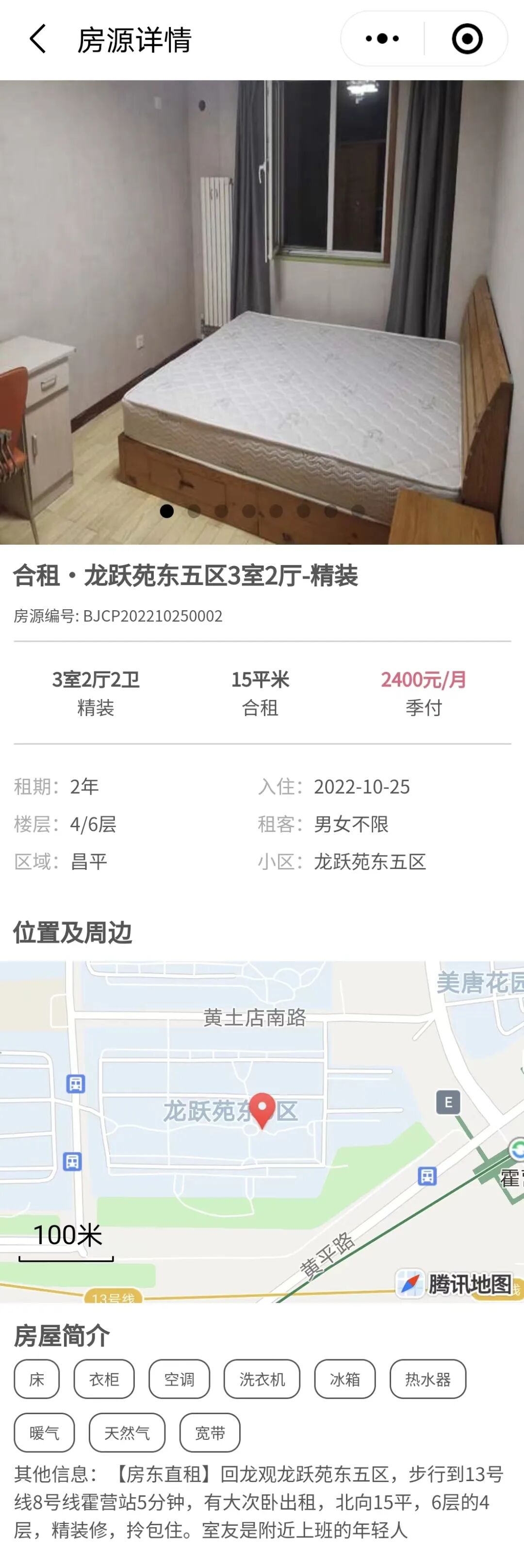 大家点击图片,就可以链接进入小程序的页面,找到该房源,并与房主联系看房、租房。