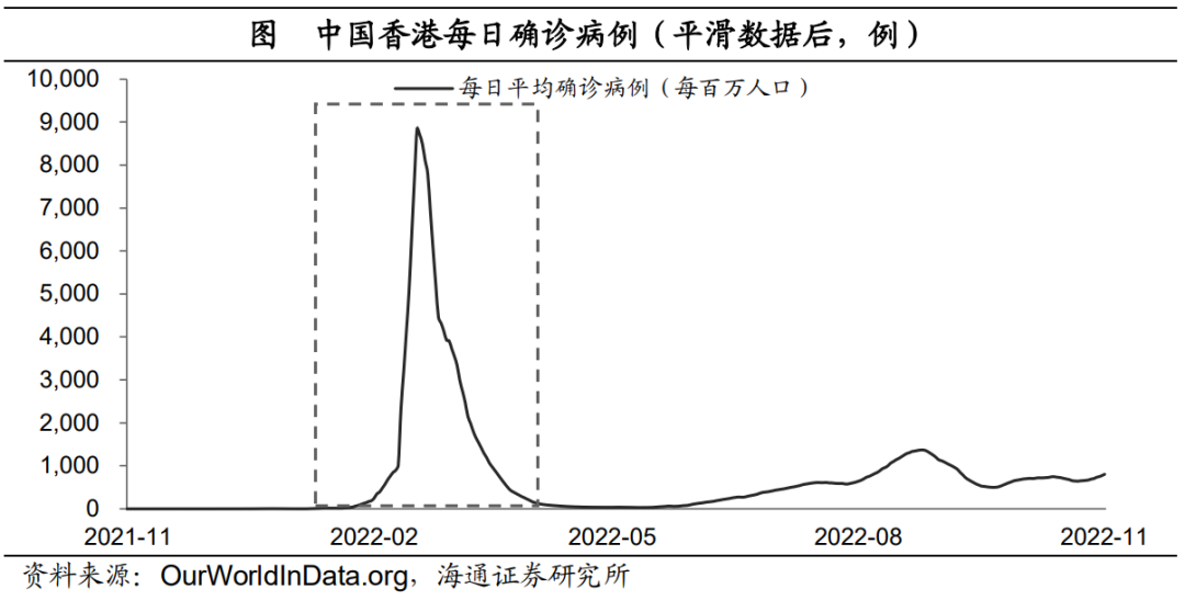 我们可以参考其他经济体进入第二阶段后的表现。我国香港地区在3月份宣布暂缓全民强制核酸检测工作。与此同时,中国香港的疫情反弹也在进行。从今年2月上旬开始,我国香港地区确诊病例快速攀升,5月中旬附近回落至相对低位,总共持续了3个多月时间,之后虽然也有疫情的抬升,但幅度相对较小。2月下旬的这一波疫情反弹,是新冠疫情影响以来,中国香港最明显的一次疫情反弹。
