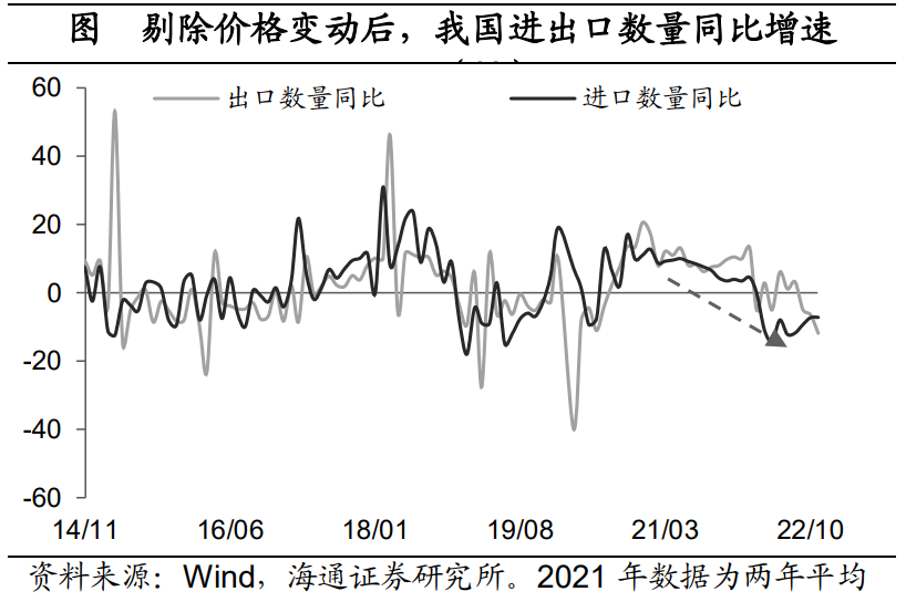 出口或延续下行。剔除涨价因素后,出口数量的增速最高点在2021年初就已经达到,当前已经负增长,且跌幅还在进一步扩大。