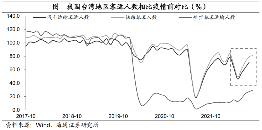 不过经济活动的恢复并没有用那么久,大概4个月。我们仍以人口流动数据为主要参考,我国台湾地区汽车、铁路客运量在4月份明显回落,但到了今年8月基本回到了这一波冲击之前的水平,所以人口流动和经济活动的恢复大概用了4个月的时间。