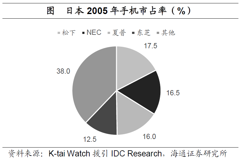 “本土化”方面,通过政府调整政策,日本保护本土消费品牌,典型的案例是日本的通信设备行业。1990年代是手机迅速普及的阶段,为了保护本土品牌、抢占本土市场,日本对手机行业采取了与国际标准不同的产品设计标准,其在架设2G网络时没有采用国际通用的GSM规格,而是采用了本土研发的PDC规格,这使得外国手机厂商难以进入日本市场,从而消费者只能消费本土品牌。这进而使日本手机市场的本土化率很高,日本手机品牌得以迅速成长。
