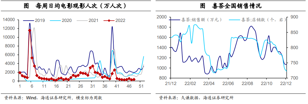 消费:耐用品消费:乘用车批发和零售同比均有改善,上周家电线上销量同比跌幅扩大,不过线下销量同比跌幅收窄。非耐用品消费:除粮油外,农产品和菜篮子产品价格出现回升,轻纺城成交量连续第9周回落,义乌小商品价格指数基本持平。服务消费:观影人次和电影票房小幅改善,但仍处于相对低位,线下升级型餐饮营业店铺数减少、销售额回落。