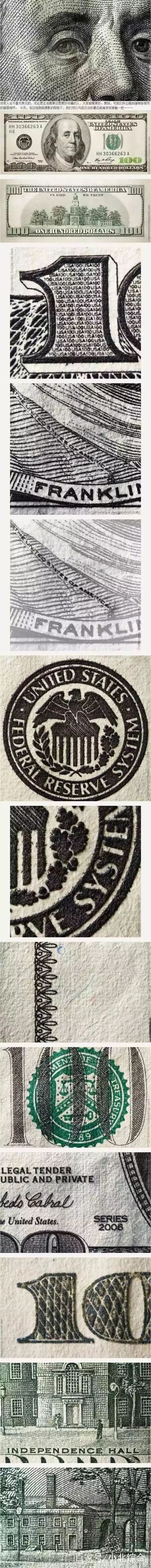 我们看下百元美钞的具体细节: