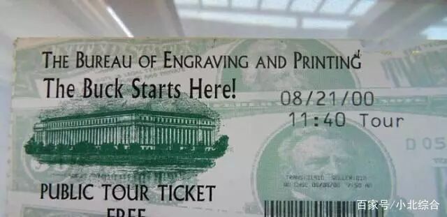 参观券上印有 :The Buck Starts Here!(大致意思是美元是从这里开始的,即美元是从这里印制的)Buck是美国口语,钱的意思,等同于money,硬币。