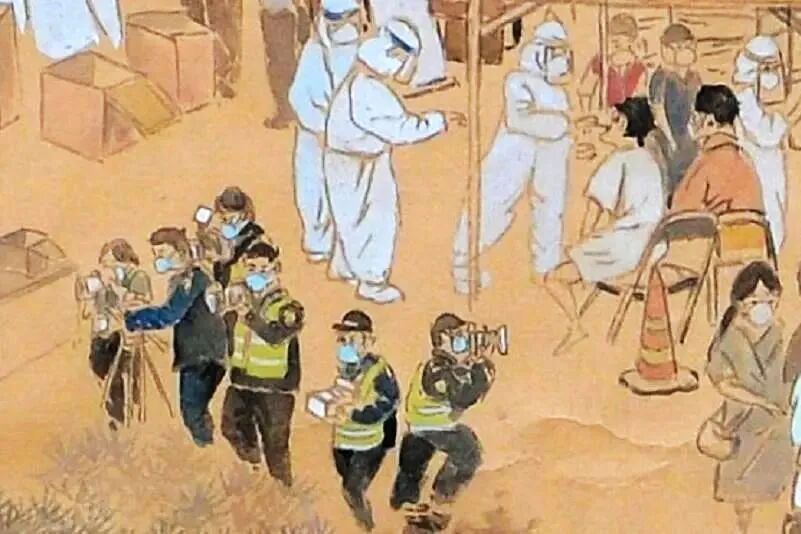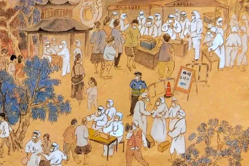 这是广东佛山90后小伙陈志杰,刚刚创作完成的一卷《核酸检测上河图》,作品一出来,就火遍了整个网络!