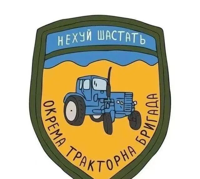 徽章的图案,就是这次战争中,乌克兰农民伯伯驾驶的所向披靡、“无所不拖”的农用四轮拖拉机。