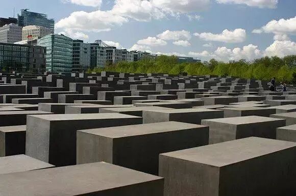 柏林的犹太人大屠杀纪念馆(Holocaust Memorial)位于布兰登堡门附近,占地19000平方米,安置着近3000块高低起伏的水泥方块。沿着斜坡走向纪念馆中心,有的方块只及膝盖,有的则高过头顶。这些方块代表着德国历史上最黑暗的一章,令人警醒,然而它是否应该选址在德国新近重建的首都心脏地带?在经过漫长的讨论之后,纪念馆才修建起来。