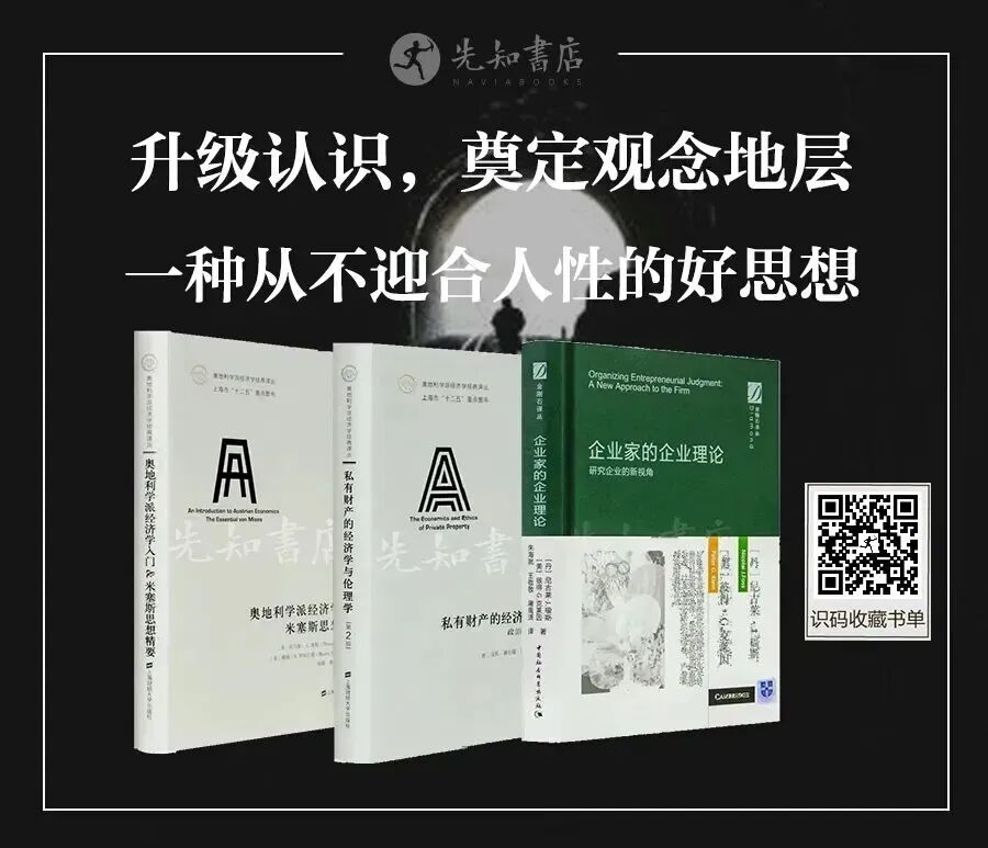 为此,新少数派与先知书店诚挚推荐文中反复提及的三部奥派作品:《奥地利学派经济学入门》《私有财产的经济学与伦理学》《企业家的企业理论》,您可识别下图二维码,一键收藏,赞赏小编。