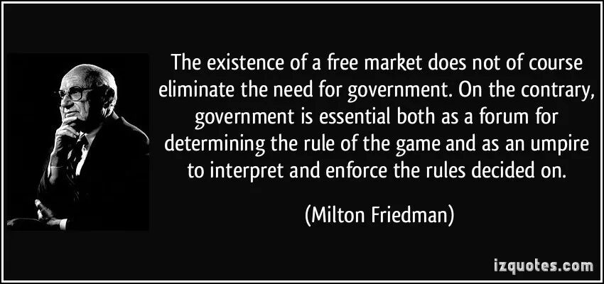 15.“自由市场的存在显然不会消除对政府的需要。相反,政府既是决定比赛规则的论坛,也是解释和执行决定规则的裁判员。”