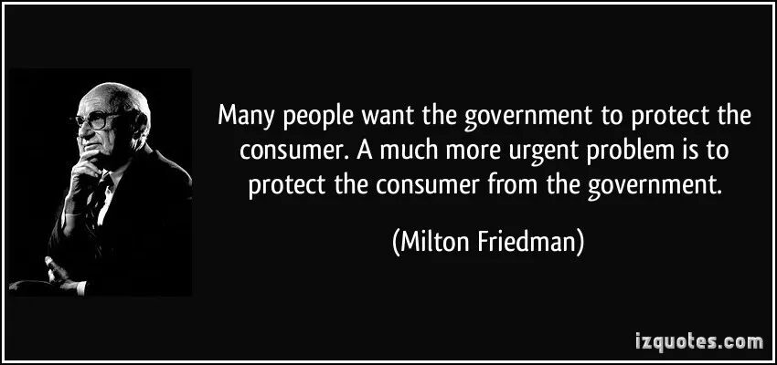 5. “许多人希望政府出面保护消费者。然而,当务之急是,保护消费者免于政府的侵害。”