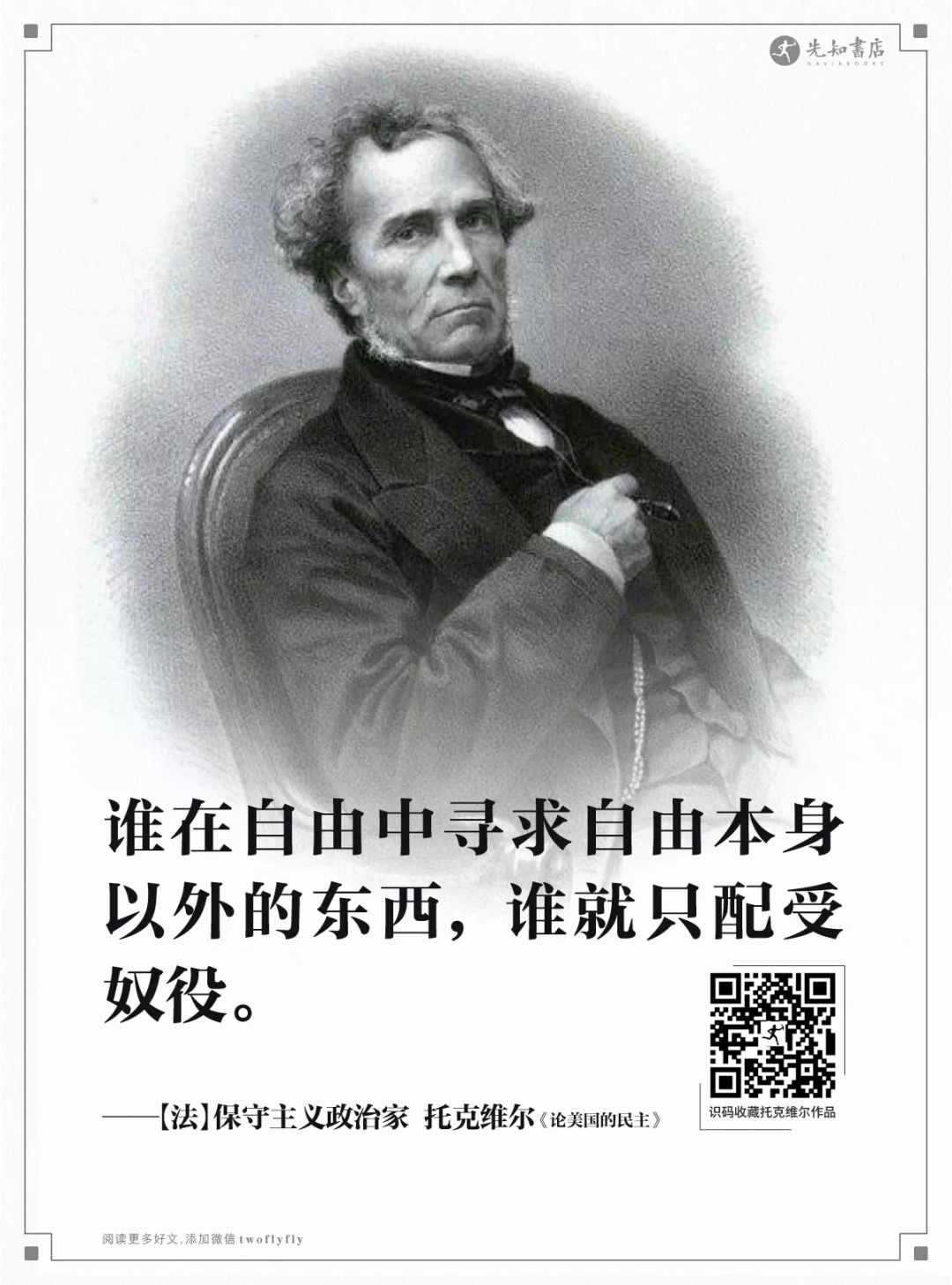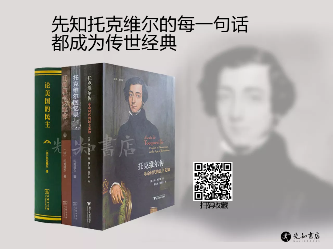 为此,新少数派诚荐“托克维尔专题四册”:覆盖托克维尔经典著作及其生平,囊括托克维尔的重要思想,他对历史的解读隐喻了所有现实政治的逻辑,也为自由提供了最强有力解释。感兴趣的读者,可识图扫码,一键收藏。