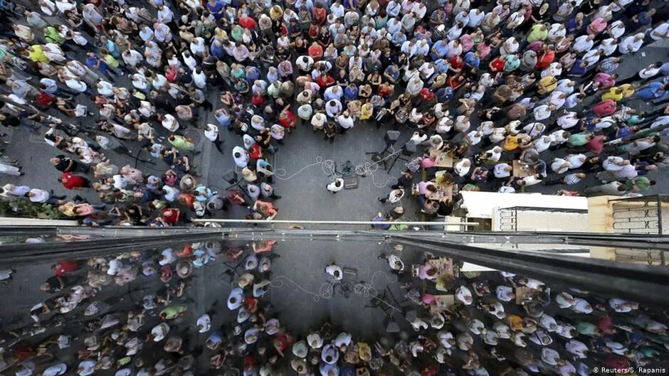 主张留在欧元区的希腊人集会。爆发于2009年的希腊债务危机是典型的全球化下国家财政通过经济一体化向其他国家无限制透支的结果。