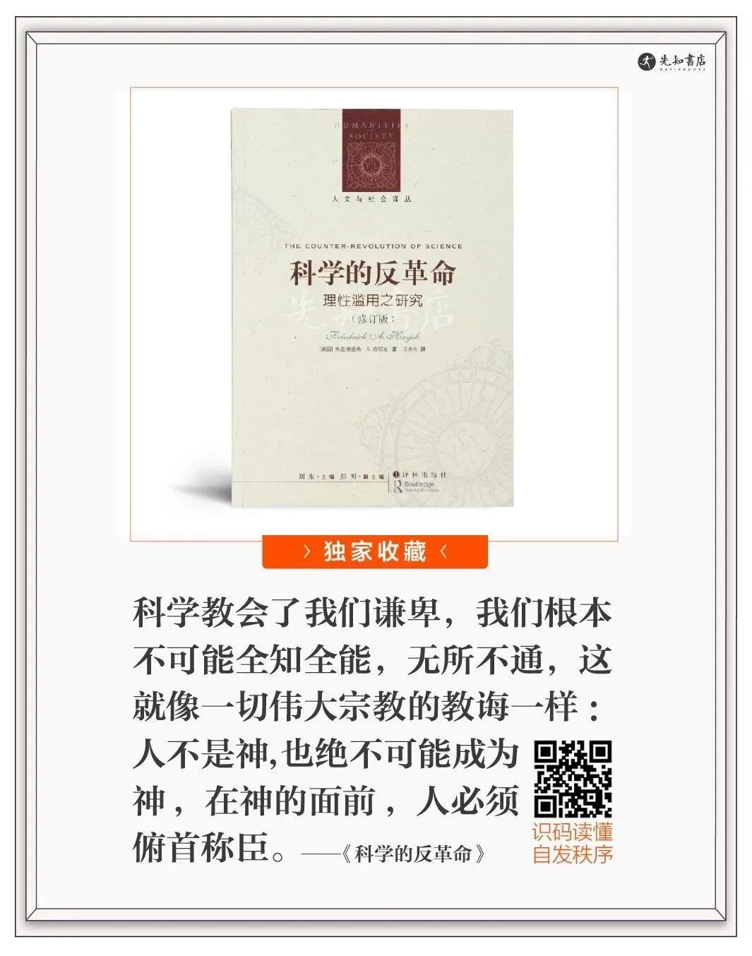 本书曾一度绝版,先知书店深知此书价值,携手译林出版社与译者冯克利老师,有幸复活本书,点击下图,可独家收藏。(还可选购哈耶克其他作品,以及本文推荐的“科学三书”)