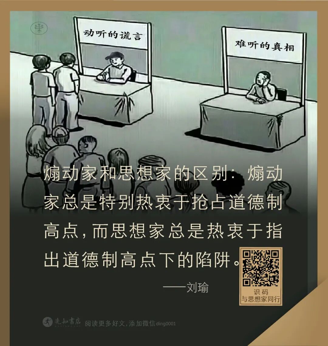 第五,我看到了一些左派的蛮横无理。我曾经写过一篇谈西汉吕太后的文章,指出吕太后的残忍,竟然被一个女人骂,说我歧视女性:“那么多男皇帝也残忍,你怎么不说?”其逻辑让我惊掉眼珠。还曾经指出一个杀人犯号称为母复仇,杀人一家三口过于残忍,而且复仇的理由纯属借口,结果就被好几个网友谩骂:“被杀的一个是在乡政府上班,明显属于强势群体。”这套毫无是非,只看身份的逻辑,我实在理解不能。