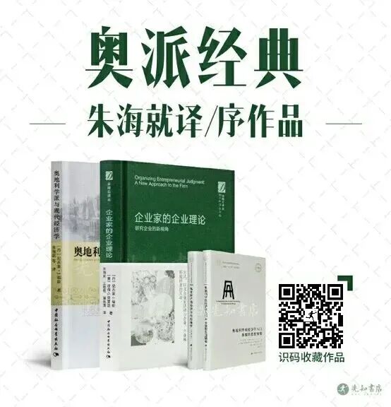 了解现代商业文明、理解企业家,最好的理论莫过于奥地利经济学派的著作。为此,先知书店独家诚荐奥地利学派经济学经典之作《企业家的企业理论》,推荐本书的三大理由:· 这本书书名说企业家,但其实是每一个人扭转三观,树立常识,重建对商业、经济和现代文明的基本思维框架的经典读物;· 作者权威、译者专业:本书作者福斯和克莱因是当今重量级的奥派经济学家,也是中国著名奥派学者朱海就老师的导师,本书正是由朱海就领衔翻译; ·可读性很强:这本书回避了形式化建模、数量经济学等,也尽可能回避了技术性术语,所以对于没有经济学和管理学底子的人来说,也容易读懂。作为一部综合叙述的作品,本书每章都可以抽离出来单独阅读,会读书的书友一定还能挖据出冰山下的大智慧。感兴趣的书友,可识图扫码,选购收藏。(欢迎点击阅读原文,选购朱海就老师的译/序作品)▍延伸阅读
