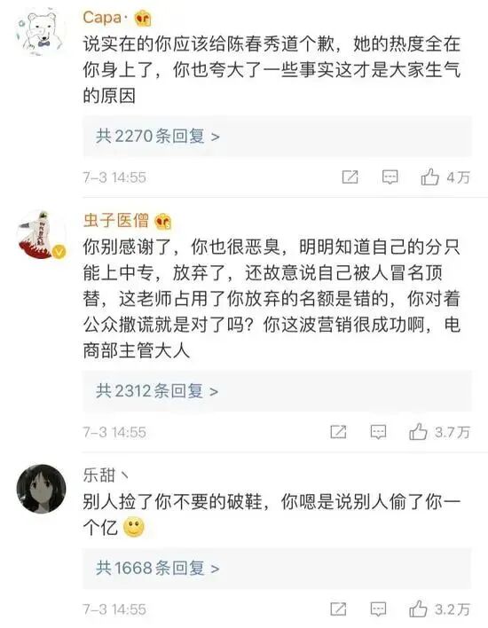 ▍10 不讨论高考顶替这样的公共议题,转而攻击个人炒作