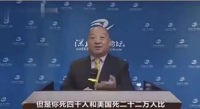 自称旅美社会学学者李毅,在深圳演讲时面带微笑地说,与美国死了22万人相比,死了4000人等于没死。