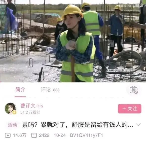 富二代曹某在工地上凡尔赛式体验打工,向B站广大网友炫耀:累吗,累的话活该,舒服是给有钱人的。