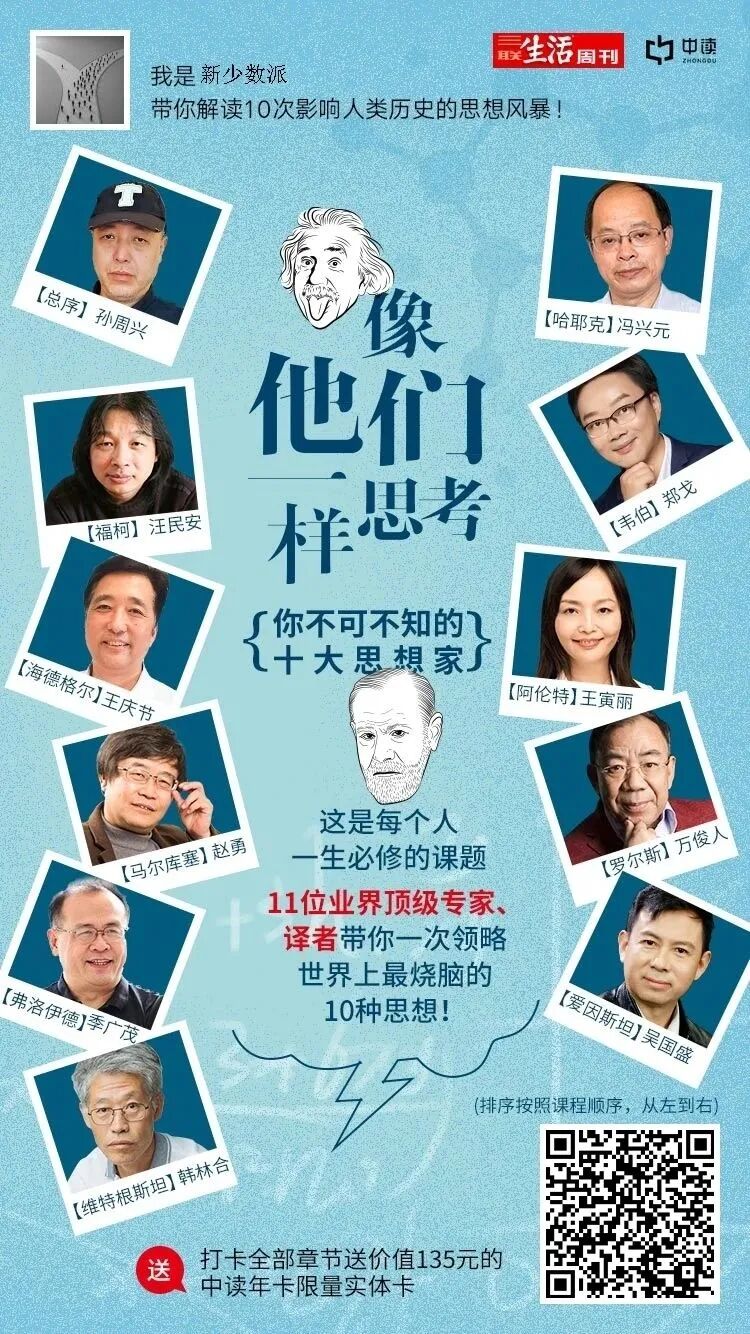 三联生活周刊精心挑选出了20世纪具有代表性的十大思想家,比如帮你看清楚你是如何浑然不知地被影响、被塑造的福柯、帮你解决“压抑”源头的马尔库塞、还有帮你逃离“恶之平庸性”的阿伦特等等。