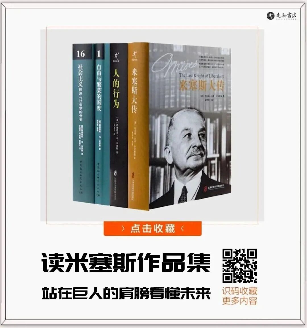 米塞斯的思想影响了罗斯巴德、哈耶克、安·兰德等人,米塞斯让奥地利学派再度崛起,他因此被誉为“奥地利学派的院长”。他是影响思想家的思想家。罗斯巴德说:米塞斯的《人的行为》是文明人必读的经济学“圣经”。新少数派诚挚推荐“米塞斯作品集”,读他的作品,从中汲取力量,在这个充满谎言的世界里自由的活着。感兴趣的书友可识别下图二维码,一键收藏,读懂米塞斯。▍延伸阅读