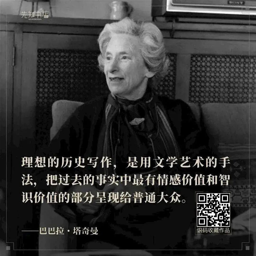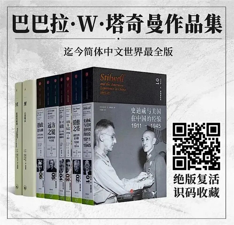 她不看重政客的得失,甚至不看重经济、科技数字,她关心的是人心,尤其是“大众的情绪温度”、维系文明的人性价值。因此,她凭借《八月炮火》《史迪威与美国在中国的经验》两次获得普利策奖,但她自己最满意的作品,却是《骄傲之塔》,原因其实很简单:《骄傲之塔》对“人的意义”有着终极的追问和关怀,而这一追问绝不会因时间的流逝而褪色。她塑造了一个人群的观念和审美,这些观念和审美绝不迎合潮流,甚至与这个意义消解的时代格格不入。但这种杂音,正是文明的进步,也是当下,我们阅读她的意义所在。读塔奇曼的文字,时常会有涂划、玩味、品鉴的冲动——这是任何为了高效获取信息和知识的碎片化阅读、电子阅读所无法代替的;所以,读塔奇曼的书,需要一种“焚香沐浴为读书”的仪式感。这或许也是当年尼克松总统开启与中国破冰之旅时,将塔奇曼的书作为国礼的原因。但遗憾的是,塔奇曼的作品在中国长期被忽视。她的部分作品引入国内后,曾一度绝版。为此,先知书店携手塔奇曼作品的出版方,复活了《史迪威与美国在中国的经验》《骄傲之塔:战前世界的肖像》等六部作品,并与近两年出版/再版的《圣经与利剑》《八月炮火》组成“塔奇曼作品集”,一共八卷,迄今简体中文世界最全版。识别二维码,即可一键收藏。▍延伸阅读