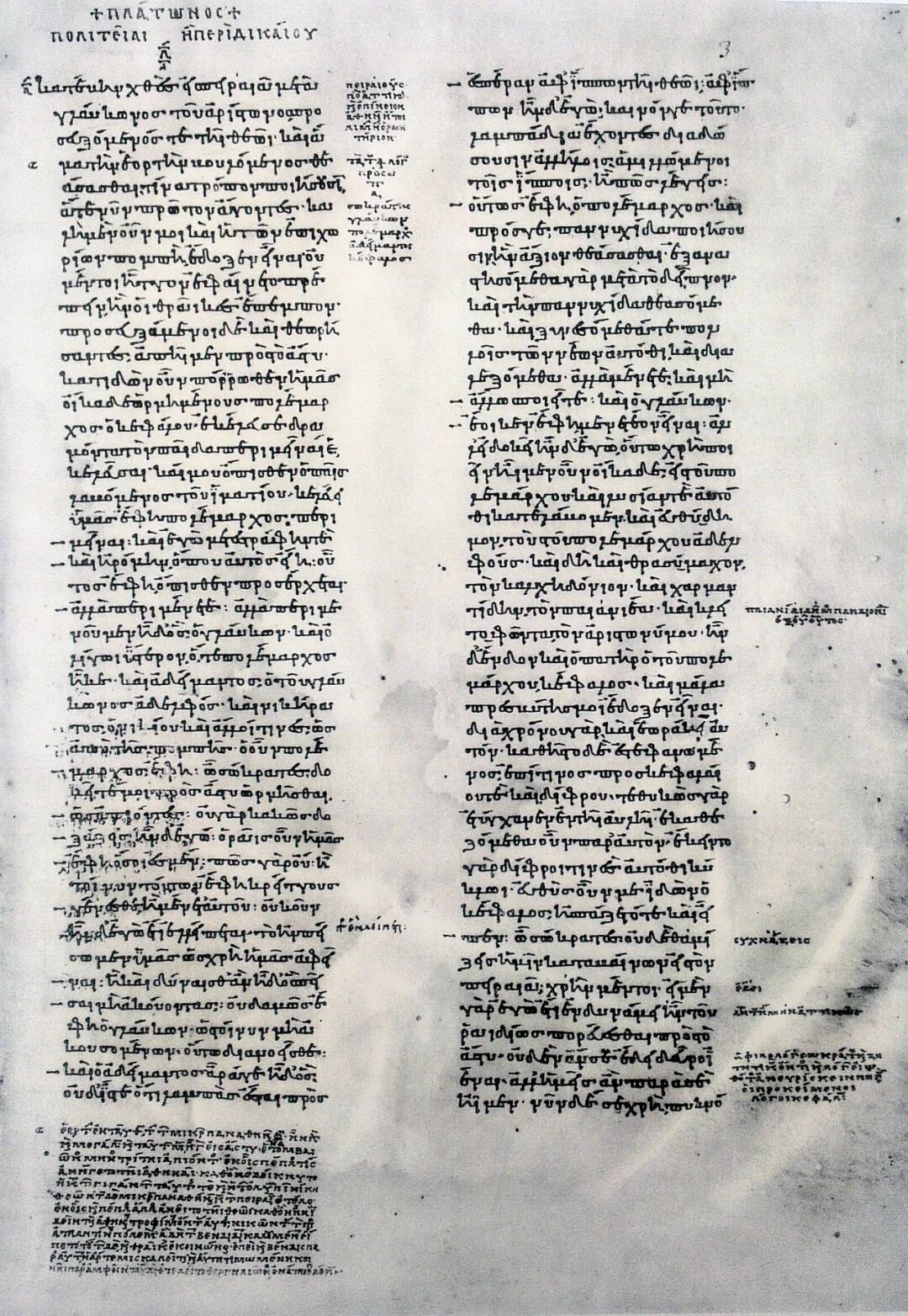《理想国》最古老的手稿扉页,写于公元9世纪,现收藏于法国国家图书馆(Bibliothèque nationale de France)。