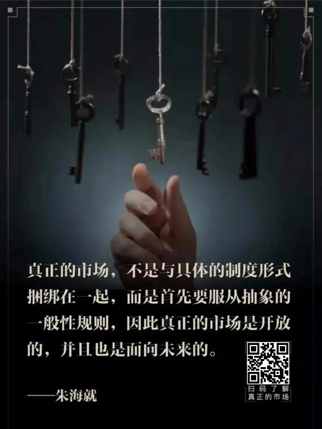 一个词汇需要一本书来谈“真正”,可见其本意已经腐败到了何种地步。但这本书的意义,还不止是“回归古典”。在《真正的市场》中,朱海就老师沿着米塞斯划时代意义的巨著《人的行动》所奠定的思想地基,提出了重新理解市场的“行动—规则”新框架,对以上污染市场的语言腐败,实现了一场釜底抽薪式的“反腐败”。借助朱海就的新框架,经济繁荣的衡量标准坚定又清晰——繁荣的表现不是货币,而是丰富、便利的商品和服务。张维迎教授说:“捍卫市场是经济学家的天职”。《真正的市场》一书,无疑是朱海就老师履行天职的证物。在市场派学者眼中,经济学是一门基础科学,而不是应用科学。要解决本国市场的“应用场景”,也应该阅读本国市场派的“基础性原著”。什么是真正的市场?朱海就的回答简单而又深刻:有助于个体幸福不断增进的市场,才能被称为“真正的市场”。至于为什么要写这本书,朱海就老师说:受错误思想影响,人们会误把虚假的市场视为真正的市场,走在“通往虚假市场之路”而不自知,这对任何一个渴望幸福生活的人来说,都是巨大的风险。为此,小编诚挚朱海就老师亲笔签名的《真正的市场》。正如张维迎教授所说:“捍卫市场是经济学家的天职”。《真正的市场》一书,无疑让人们在“虚假市场之路”折返,追求真正的幸福生活。先知书店有幸获得朱海就老师亲笔签名书,数量有限。识别下图二维码,皆可抢先收藏。