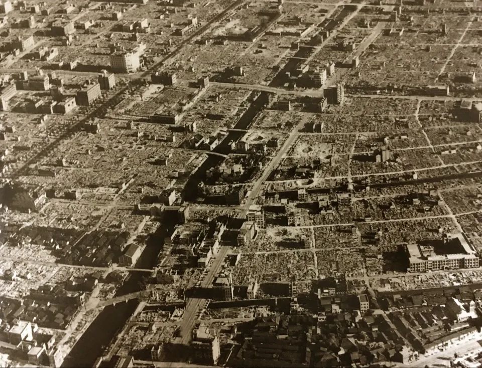 ▲二战末期,遭遇大轰炸后的东京街区